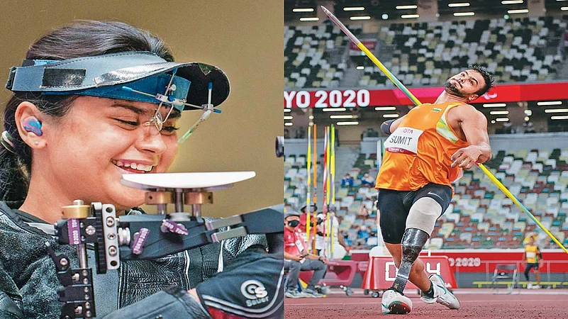 Tokyo and javelin have been synonymous for Indian athletes this year. After Neeraj Chopra won India’s first Olympic athletics gold, Sumit Antil clinched gold in the men’s javelin F64 at the Tokyo Paralympics, with a new world record throw of 68.55m. The 23-year-old, who lost his left leg in a motorbike accident in 2015, smashed the world record not once, or twice, but thrice during the final at the Olympic Stadium. “Currently, I’m unemployed...but I hope I will get a job after this. Let’s see what happens when I return to India,” he says. The Haryana government has promised him a job and Rs 6 crore for winning gold. Sumit’s performance overshadowed ace javelin thrower Devendra Jhajharia, who clinched silver. Jhajharia is India’s greatest Paralympian, after winning gold medals at the 2004 and 2016 Games. Sports loving Indians are waking up to the sound of their success, each preceded by personal tragedy, each medal bought by sacrifice and iron will.