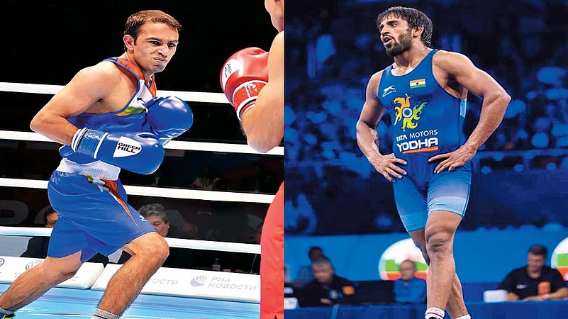 Carrying the hopes of over a billion people—the cliché cannot be ignored as Amit Panghal and Bajrang Punia limber up for the much-delayed, pandemic-hit Tokyo Olympics, hopefully starting on July 23. Power sport has never been an Indian strong point, although a few medallions of honour and pride did come by in fits and starts. Seldom has two world number ones given us the best shot for a podium finish even before the Games began. Against this backcloth of history, boxer Panghal—No. 1 in 52kg flyweight—and wrestler Punia, top ranked in 65kg, underscore the changing scenario in world sport. But how did the Indians become serious medal contenders at the Summer Games after a dismal Rio 2016? The answer can be grubbed out of the preps and qualifiers—especially India’s record haul of 15 medals (two gold, five silver and eight bronze) at the Asian boxing championships in Dubai. Isn’t that a clear indication of the promise our pugilists hold out? Tokyo will define the careers of many of them.