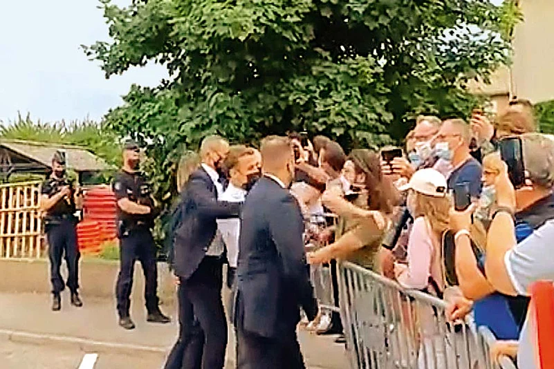 A 28-year-old Frenchman who described himself as an extreme-right “patriot” was sentenced to four months in prison for slapping President Emmanuel Macron. Videos showed Damien Tarel slapping the French leader’s left cheek and shouting a centuries-old royalist war cry—“Montjoie! Saint Denis!”