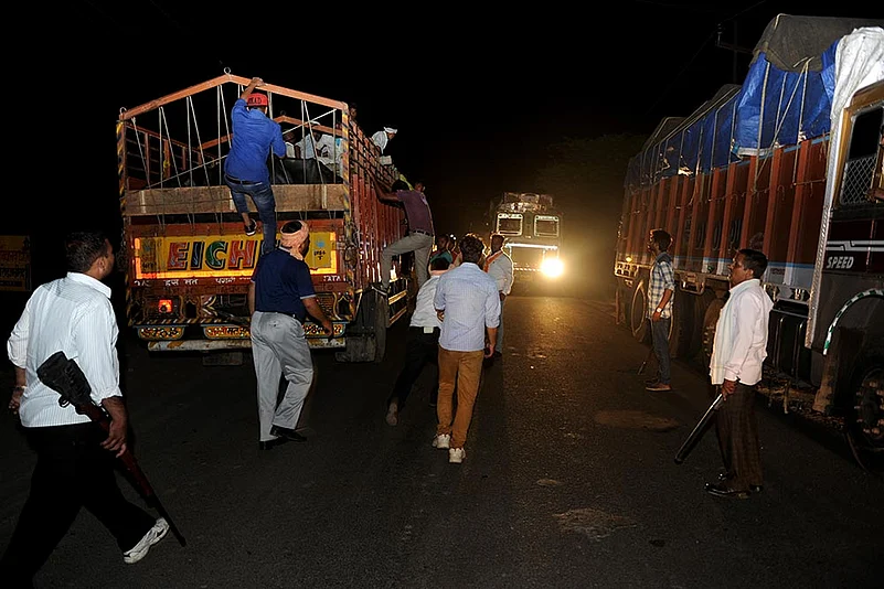Cow terrorists detain a truck on NH 91, Aligarh