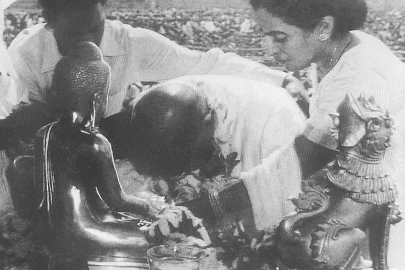 Ambedkar and his wife Savita converting to Buddhism in Nagpur