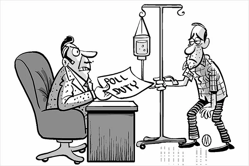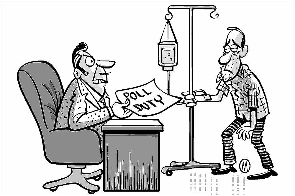 But, a few officials have been caught Mathuradas-ing, that too with much more flaky excuses like hypertension, backache and ankle sprain. At least 45 state employees in Gurgaon have sought exemption from election duty citing such reasons.