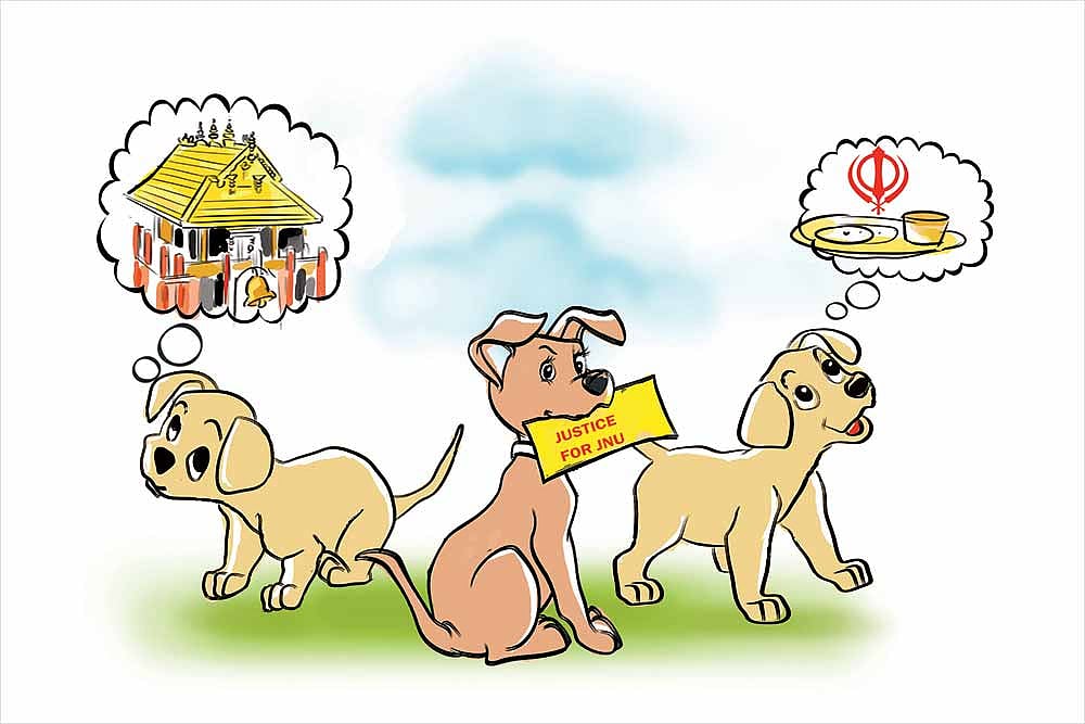 Need some respite from the endless churn of the news cycle? Heartwarming stories of canine companionship pouring in from across the country provide the perfect respite. In Tirupati, a stray pupper took a liking to 13 Ayappa devotees on a Sabarimala pilgrimage and steadfastly followed them—till Chikkamagaluru, Karnataka, so far, a distance of 500 km. “We didn’t notice the dog at first, but as we walked, it kept turning up every now and then,” says one of the pilgrims. They feed it and have even collared it, but the pilgrimage has not been easy for the pooch—his paws got injured a couple of times. In Delhi, a comrade canine accompanied the students of JNU on their recent protest against the fee hike. On the other end of the religious spectrum, a pious pooch joined the Guruparb celebrations in a gurdwara and sat calmly through the kirtan as fellow devotees wrapped him in a blanket and fed him langar.