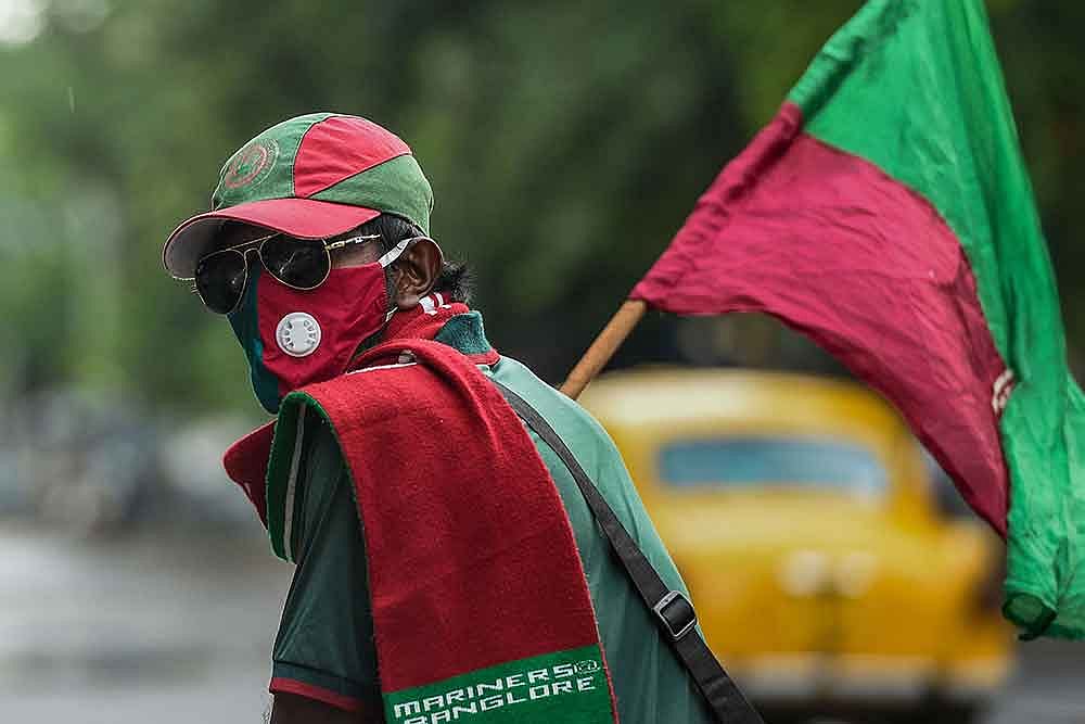 A fan on Mohun Bagan Day—celebrated every July 29 to mark the Calcutta team’s historic victory over East Yorkshire Regiment in the IFA Shield final in 1911.