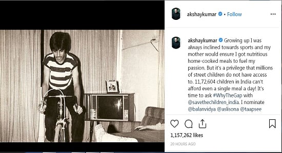 "Growing up I was always inclined towards sports and my mother would ensure I got nutritious home-cooked meals to fuel my passion. But it’s a privilege that millions of street children do not have access to. 11,72,604 children in India can’t afford even a single meal a day! It’s time to ask #WhyTheGap with @savethechildren_india," his caption stated. The actor also tagged his ‘Mission Mangal’ co-stars, Taapsee Pannu, Vidya Balan, and Sonakshi Sinha.