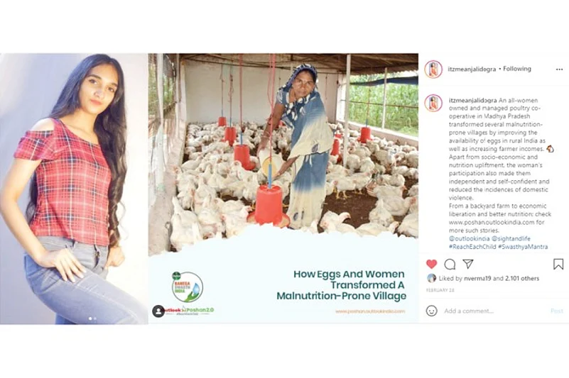 A fashion blogger and Instagram influencer with 56.5k followers, Anjali Dogra shared an Outlook Poshan story on how an all-women owned and managed poultry co-operative in Madhya Pradesh transformed several malnutrition-prone villages, simply by improving the availability of eggs in rural India. Sometimes, simple things can work wonders.