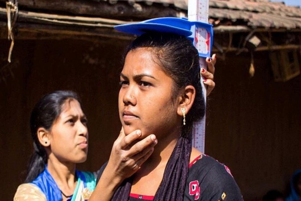SuPoshan Sangini measuring Mid-Upper Arm Circumference (MUAC)