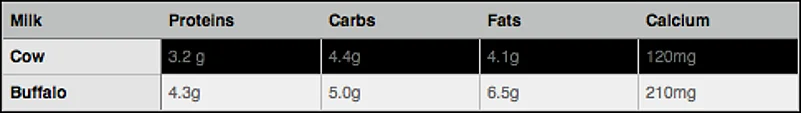 In Indian society, milk plays an important role as a primary source of protein and calcium, not just for children but also for adults. The milk consumed is mainly from cow or buffalo. Let’s see what is the nutrition content in the kind of milk we consume: