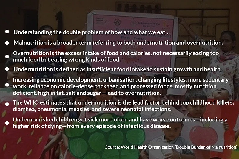 With the 89th Union Budget grabbing eyeballs and mind share, the buzz is all about development and progress, investment and growth, employment and skill development. We wanted to get inside that politico-economic bubble and separate the wheat of deeper existential issues from the chaff of pragmatic concerns. The Outlook Poshan team gave young reporters mobile cameras and a question: “What is the biggest challenge that faces India?” We asked them to go out, capture people and their concerns as they see them, across Delhi. A simple experiment, but through their videos and interactions, they brought back a sense of the pulse of the people. So watch this video and you will see how everybody mentioned all the big-ticket national issues—jobs, pollution, corruption—as the biggest challenges facing India. Not a single person mentioned the unprecedented burden of ill health, the spiralling rise of chronic diseases that now consume the country, quietly—all because we face the “double burden of malnutrition.”