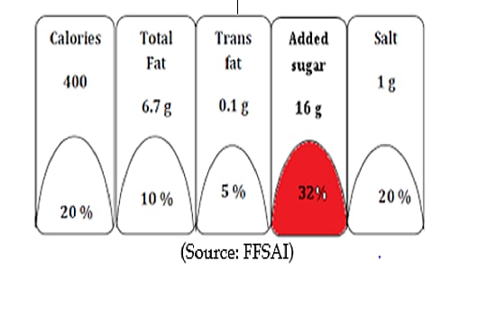 Food Safety and Standards Authority of India (FSSAI) plans to introduce a FoPNL format for the packed foods which are high in fat, sugar & sodium (HFSS). To create an implementable and universal FoPNL, FSSAI proposed a format and put it up in the public domain for feedback. According to this, if the total amounts of calories, fats, trans-fats, sugar, and sodium per serving exceed the stipulated limits, it would be indicated in red colour. As per the draft guidelines, following information shall be declared on the front of pack alongside the usual mandated information like name of the food; brand name, veg or non-veg symbol. The proposed format has two parts: