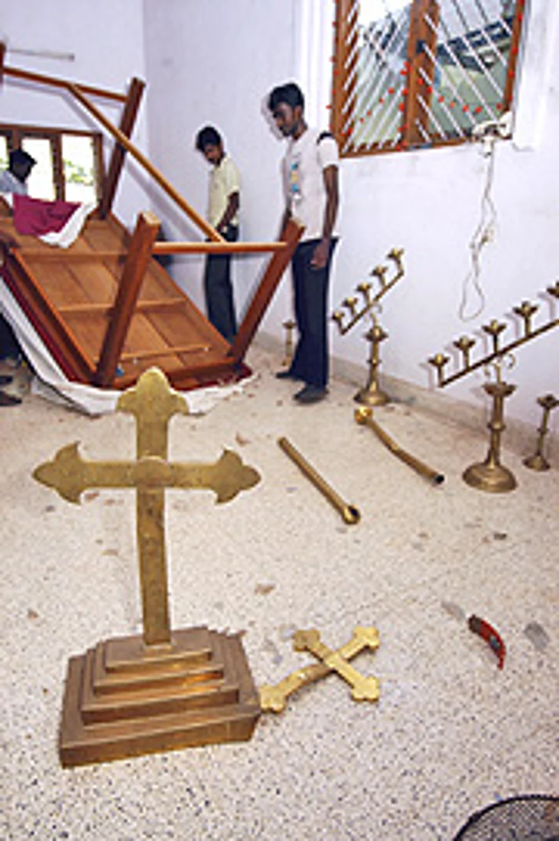 | A vandalised church in Mangalore |