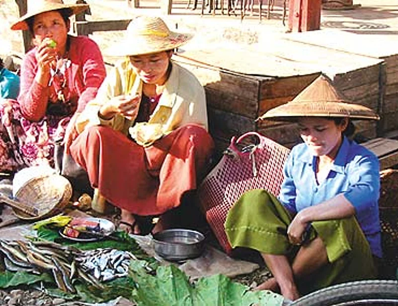 Last month I talked my way into an assignment to revisit Tamu-Moreh. It was for a culinary piece (you're reading it) but my real agenda was to savour the noirish charms of Tijuanaland again. After the flight to Imphal and a four-hour road journey, I reached Moreh, too late to visit Tamu but with plenty of time for a recce of Namphalong Bazaar—now bristling with everything from power tools to iPods. I befriended a liquor stall owner who told me that the pistol-packing proprietor of Kabaw Hotel was dead. "Char number se mar gaya," he said, which turned out to mean AIDS. We discussed his whiskies, which ran from Thai-bottled Vat (750cl, Rs 350) to Scotland-bottled (Rs 600) to Burmese Two Dog and our own RC. "Everyone wants to drink foreign liquor," he said sagely, "Two Dog is foreign in Moreh and Bagpiper is foreign over here." Then he recommended three restaurants for me to visit in Tamu the next day. One Chinese, one Tamil, one Burmese.