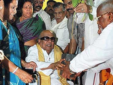 The Kalaignar attracted humungous crowds at his Gopalapuram, CIT colony residences and at Anna Arivalayam, the DMKheadquarters. And in the melee, the light-fingered made merry. The Royapettahpolice received a bunch of complaints that day and one of them was fromParamasivan. Before you ask "what was he thinking?" let me assure youthat Paramasivan had no intention of taking so much moolah (which apparently wasactually meant to be returned to a friend he had borrowed it from) to thebirthday bash. But party cadre from Namakkal dragged him along -- after all it'simportant to be seen even if you lose an arm and a leg. So Paramasivan wentinside and when he came out, his dhoti was torn and his money gone.