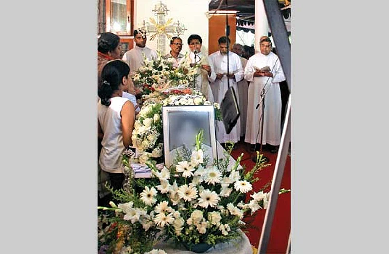 Morning office-goers, schoolchildren in crisp uniforms, shopkeepers and bystanders stop to stare at a funeral procession winding through Thiruvalla, a midsize town in central Kerala, flush with expat remittances. A well-modulated voice announces over the microphone: “It’s the last journey of the dearly beloved son of this town....” He then gently informs the townsfolk, some just waking to the day, that the deceased looks so peaceful: “Looks as if he is just sleeping.” The glass-panelled hearse allows onlookers a glimpse of the body as the procession passes ever so slowly. The man at the mike loops them in with some generous sentimentality: “This son, who had loved this town so dearly, and in turn was loved, is now going away forever....” He then breaks into a funereal dirge in Malayalam: “Nearer, my God to thee....” Once the coffin is placed in the home, the announcer, Niranam Rajan, positions himself in a corner of the pandal with his team and proceeds to the second part: provoking emotion and sympathy with songs and stories till the last leg of the journey to the grave.