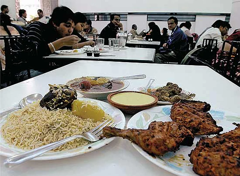 There are certain biriyani joints in Calcutta—Rahmania, Royal, Shiraz, and, lately, Arsalan—that have acquired cult status, and foodies love to debate about their relative excellence. Our own favourite, however, remains Aminia. Its biriyani is tinged with kewra and, like other Calcutta biriyanis, it slips an unorthodox bit of potato into the portion of mutton (the legend being that that’s how the newly impoverished Awadhi nawabs tried, creatively, to stretch their resources.) Aminia is also known for its chaap, subzi gosht and rezala—another typical Awadhi speciality of meat cooked in dahi and flavoured with masala. And in winter it serves a pretty good paya. Some people complain that the portions of mutton have become a bit skimpy of late, but for 200 bucks per head what the heck do you expect?