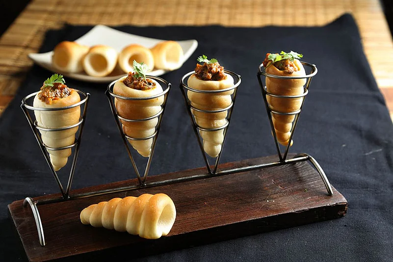 The Pork Sliders (Rs 275)—pulled, barbecued pork in tiny brioche buns—are soft, saucy morsels. The Hummus Pita Spiced Chicken (Rs 225) is subtly flavoured. The Raan Bao (Rs 225) provides a wonderful contrast between fluffy bao and raan in rich red gravy. The Indonesian Nasi Goreng (Rs 350) is perfectly spiced fried rice, generously endowed with prawns and chicken. While the Butter Chicken Bunny Chow (Rs 375)—a South African street food where curry is served on a crusty bun—is a winner. In fact, the only disappointment is the Aam Aadmi Toast (Rs 175)—a slightly modified Kejriwal that lacks the punch of the original. The dessert is equally successful. The Blueberry Pancake (Rs 225) is topped with delicate blueberry compote. The Black Forest Waffle’s (Rs 225) cream and chocolate topping is spectacular. But the Chocolate Brownie with Salted Caramel Filling (Rs 195) is certainly the dessert of the day. Clearly, 145, with its large, airy rooms and smiling staff, has a great vibe.