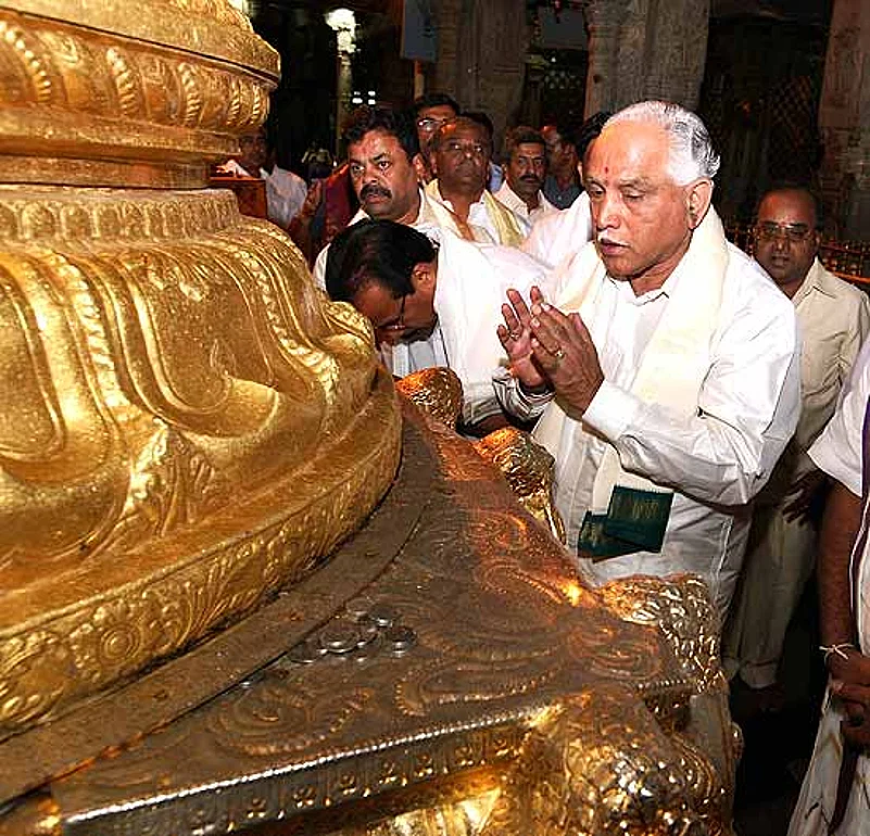 A few months ago, when B.S. Yediyurappa was chief minister, he apparently got the east gate of the Vidhana Soudha closed, fearing that his opponent would make an entry from there and usurp his power. Not only is he accused of shutting the gate but also of throwing around consecrated lemons and a sacrificed hen. The local media often splashes pictures of Yediyurappa performing ‘yagnas’ and ‘homas’ in various temples.