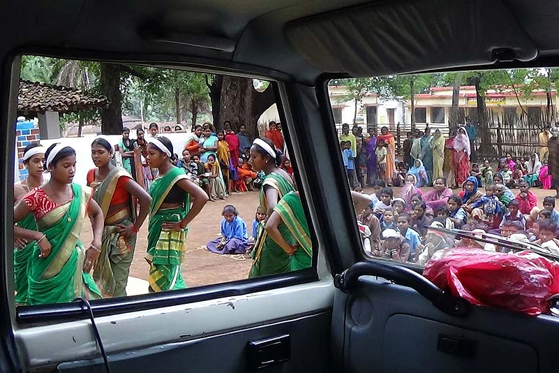 Some Kowachi, eldest of the five girls at 20, says they sing for adivasi welfare, for the re-establishment of their tribal culture and tribal language. There is little that’s political in their songs but the use of Gondi is in itself a statement. Umeshwari Dugga, the lead singer, and Kowachi are both from an interior village near Kanker. Rano, Leelavati and Ramvati are from Markabeda village in Narayanpur district, north-east of Bijapur. Earlier that day, they had finished another performance at a village bazaar, stopped at Bijapur town where Outlook met up with them, before travelling on to Ilmidi.