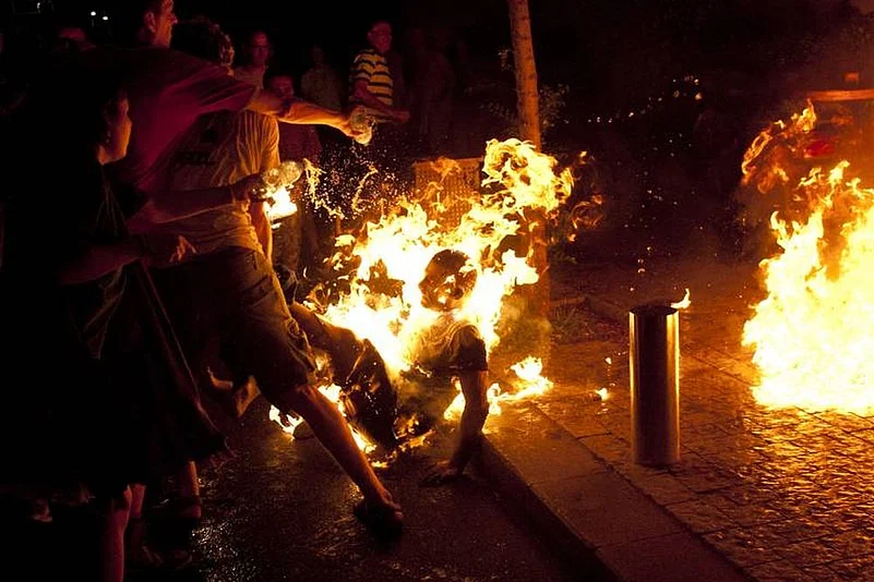 Alleging that he was humiliated in full public glare, the driver then suddenly took out a petrol can from his car, poured the fuel all over him and set himself ablaze.