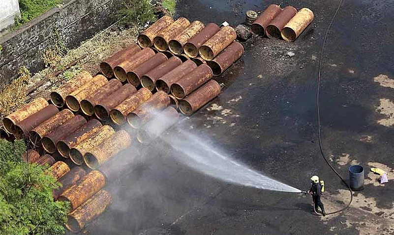 The problem, and the scale of danger it could pose, was brought to light in July this year when over a hundred people were taken ill in Mumbai following a chlorine gas leak from one of the many containers at the Mumbai Port Trust (MPT). The cylinders—around 140 of them—were imported way back in 1997, but the importers subsequently declined to receive the hazardous consignment, leaving the port officials to deal with it. It’s a problem they have chosen to forget. The report says more than 203 metric tonnes of various kinds of hazardous substances lies scattered around Mumbai port; another 200 metric tonnes lies awaiting disposal at the Jawaharlal Nehru Port Trust (JNPT), also in Mumbai.
