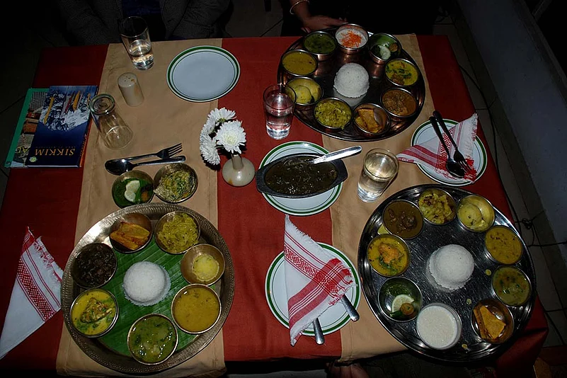 From an imaginary standpoint somewhere on the Indian ‘mainland’, perhaps next to one of those fauji dhabas, the cuisine of Assam will seem marked by a jungle of dotted McMahon lines, connoting various kinds of cultural frontiers. For the local, on the other hand, it’s the centre of the universe, a joyous thing in itself, a secure habitus—the place that may well have invented rice—as well as a gateway to a shared topography across an astonishing variety of Northeastern cultures. This old favourite in Silpukhuri is the perfect meeting point for the two—the local and the new initiate into everything Ahomiya. As you go through the courses, the khar and the tenga and the rest, the second-order family resemblances may flash across the mind. Its more feted riverine cousins south and west, and the other sorority with their shared interest in ghost chilli, pork and fermented food.