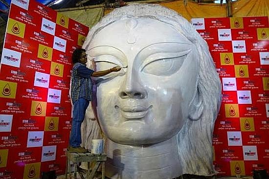Perhaps it was prophetic — Deshapriya Park was hosting what had been touted as the world's biggest Durga image, the concept of Star Cement. Red and white banners had boasted the brand promise for months and a few other puja committees had shouted back with promises of the world's biggest flower, or comments like 'does size really matter'?