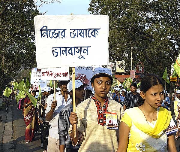 Some are doing more than pressing buttons. Last month, filmmaker Anindita Sarbadhicary’s ‘Save the Mother Tongue’ rally, with posters like the one bearing Tagore’s quote, “Mother tongue is equivalent to mother’s milk”, was attended by nearly 8,000 culture-conscious souls, among them artists and authors. “This rally reflects the anger of a large number of people who feel that enough is enough, and something must be done to save the mother tongue,” said Sarbadhicary.