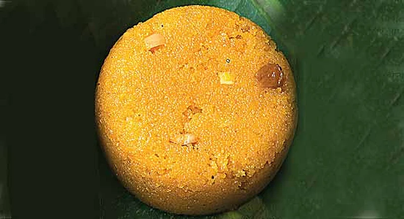 - Now, add the water and boil well. Mix in salt and food colour. While the water is boiling, add the sooji-sugar mixture little by little and simmer for a few minutes.