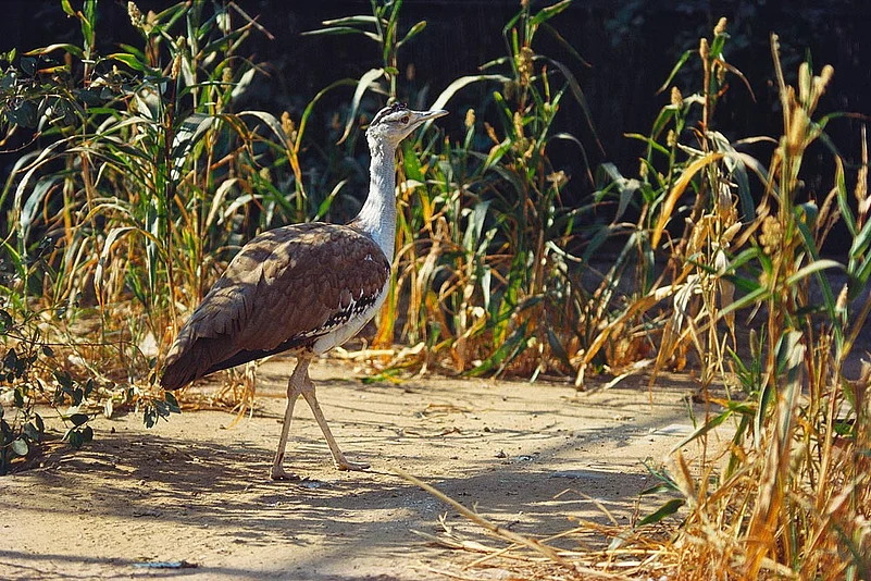 On the afternoon of September 15, a farmer in Karamba village of Solapur, Maharashtra, was grazing his cattle when he noticed a large, severely injured bird on the ground, its wings singed. Hovering by, waiting for death to strike, were a few feral dogs. As he edged closer, he saw a black mobile-like device on the prone creature. He knew the bird, a frequent visitor to his fields from the adjacent Nanaj sanctuary, and immediately informed the forest department. Within minutes, a rescue team reached the spot, gathered the inert bird and rushed it to the veterinary hospital in Solapur. But it was too late. ‘Alpha’ was dead.