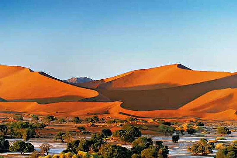 Sosusvlei: Forget Windhoek. Swakopmund? Too crowded in the southern summer. Visit Sosusvlei instead in Namibia’s Naukluft national park: you have probably seen it in a hundred brilliant photographs, but seeing it in real life is stunning. These are sand dunes the way God intended them to be—piled high with talcum-soft sand, frequently in perfectly-shaped piles. See them from the air in a hot-air balloon ride, or try walking up the sloping sands.