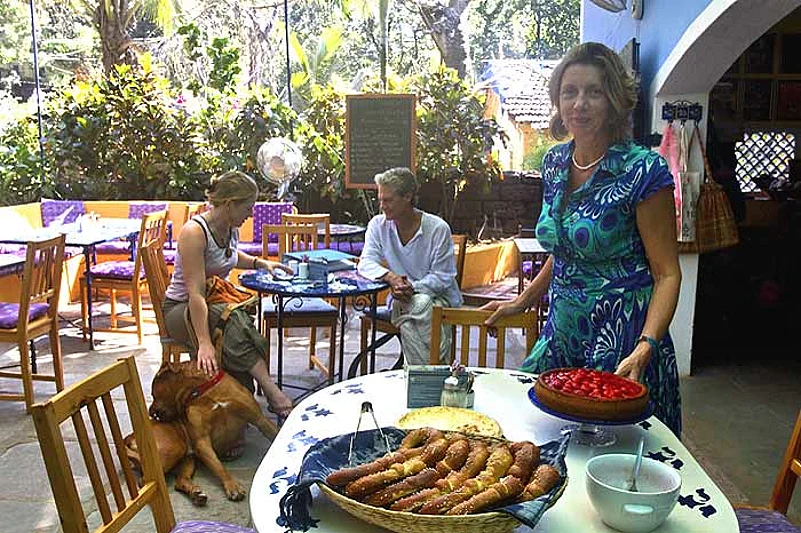 “Ya, I used to say I would never consider living in India because I could not find pasta in the shops. And I wasn’t joking!” Yogini Rammacher smiles as she sips a glass of iced coffee with vanilla ice cream, while I enjoy her elderberry spritzer, served in a tall glass. We are in Villa Blanche, her pretty garden cafe, a favourite of the yoga crowd and genteel Delhiites settled in Goa. “For years I kept returning to India because spiritually, I craved being here, but could never stay too long,” says Yogini (she prefers to be known only by her Indian name), who used to run a fashion business in Europe. “Then, suddenly, Barilla pasta and olive oil could be found everywhere and I knew my time had come.” At her famous Sunday brunch, Yogini serves a startling array of dishes, each unique and perfectly seasoned, but she is best known for her scrumptious cakes. “Baking is our initiation into womanhood,” says Yogini, who has been baking since she was 10, in her native Germany. On a recent Sunday, a page-three crowd was clearly thrilled with the mix of great food and magical ambience she was able to create.