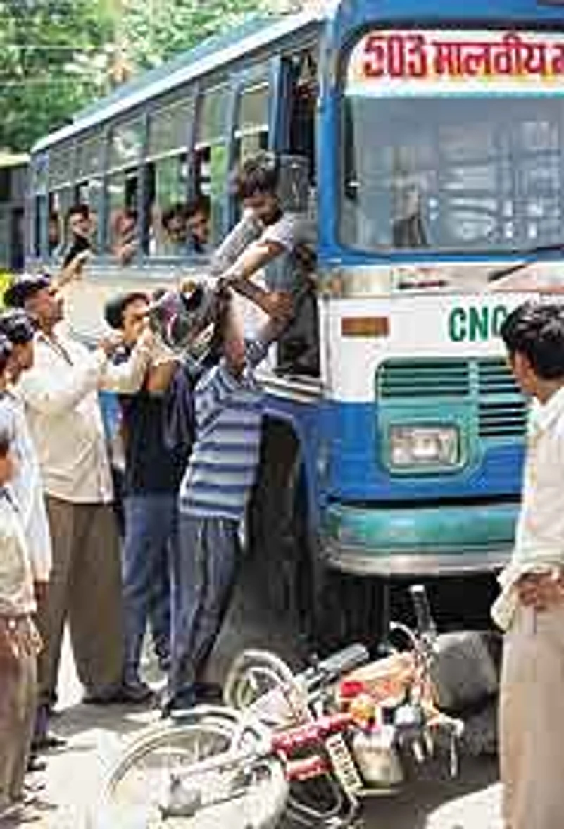 In the national capital, where there is a type of people about whom a former airhostesses says, "if something goes wrong they will threaten you even high up in the sky—'I know the minister'", a wrong move, a wrong word can mean death. "There is a certain class in Delhi," says Amod Kanth, the investigating officer in the famous Jessica Lal murder case, "who are drunk on power and they do things without thinking about the consequences." Ravi Chaudhary, a businessman, got into an argument with a skating instructor Jagral Singh after their cars scraped. Singh then rammed his Maruti Gypsy into Chaudhary and dragged him over a distance. Chaudhary's wife and two sons aged 8 and 3 stood on the road and screamed for help which didn't come for a long time. He died the next morning. But some pleasant things do happen in rage. A Blueline bus driver may get beaten up. Ajay Agrawal, a lawyer, was travelling in his car from India Gate to Siri Fort when his path was blocked by a Blueline bus parked "typically eight feet from the pavement," he remembers. "What was worse was that there was another Blueline driver who wanted to chat and had stopped his bus in the middle of the road. We honked, other cars joined in but the buses wouldn't budge. A fire engine on duty came along ringing its siren, still no movement. What happened next was amazing. The fire engine driver hauled the Blueline driver out of the bus, hopped into the driver's seat and drove it to the side of the road, while the remaining firemen punched the driver into pulp. After which they hopped back onto the fire engine and drove on. "I was stunned by their efficiency and effectiveness". Civic sense was fed the hard way.