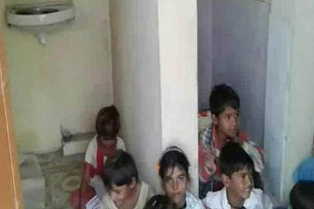 A disused toilet became the classroom for students in a primary school in Madhya Pradesh's Neemuch district as there's no school building.
