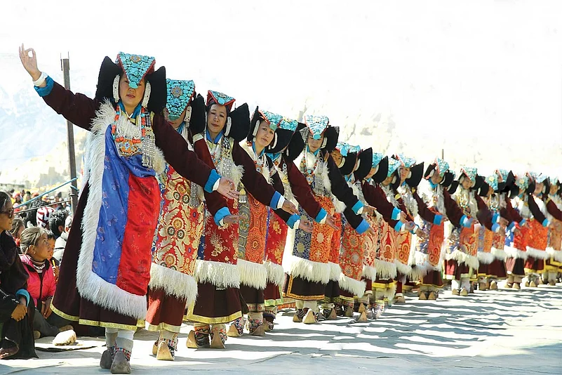 Thousands of people from across the Himalayas gathered at Hemis to celebrate the life of Buddhist philosopher and scholar Naropa, who lived between 1016 to 1100 CE, in their tradition ways with singing and cultural events.