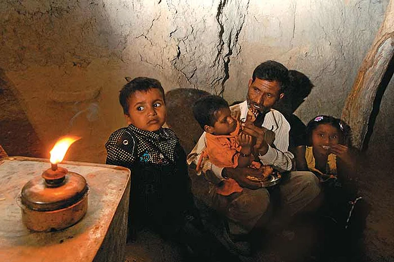 When we visit Dewari and his children, two-year-old Sarla is wailing aloud for her mother. “Ab kahan se laoon iski ma (where do I get her mother from now)?” asks a helpless Dewari Lal. He lives along with the families of his two brothers in the same house. “The women in the house look after all the kids,” he says. One look and you know that is far from the truth. The three separate rooms in the house are, in fact, three separate households, running separate kitchens. So the responsibility of Dewari’s family is on the tiny but firm shoulders of Preeti. “I look after both my siblings, and cook. Chawal aur dal bana lete hain (I can cook rice and dal),” the eight-year-old says with a sense of pride. She confesses to being fascinated by the alphabet. So what about studying at the primary education centre that’s just a stone’s throw away from her house? “Jab kabhi fursat hoti hai toh chale bhi jaate hain, nahin toh Lalli (two-year-old Sarla) ko dekhte hain (Whenever I have the time, I do go there. Otherwise, I tend to Sarla),” she says.