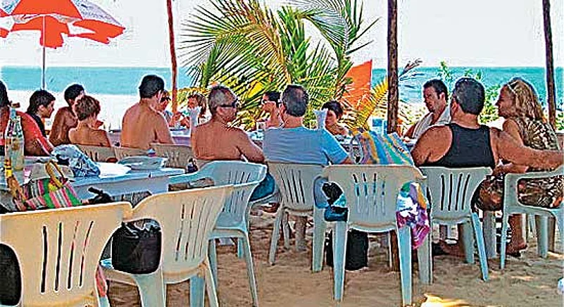 In Ian Fleming’s novel Thunderball, set in the Bahamas, James Bond takes the sultry Domino Vitali to a romantic little restaurant hidden away on a beach and plies her with Bloody Marys, leading eventually to a seduction scene under the casuarina trees. Change a detail or two about the joint and you get Zeebop: the same idyllic setting, the same white sands, turquoise sea, rustling coconut palms and whispering casuarinas. You laze in the shade of deep thatch awnings and order Bloody Marys (the delicious, bikini-clad Domino, alas, is strictly optional). Mr Fernandes brought us a large tray of the day’s catch to inspect, bought from Margao market in quantities just sufficient for today’s needs (so if they run out, bad luck). With his help we finally decided on prawn peri-peri followed by a red-snapper recheado and crab xec-xec. The fiery red snapper recheado was balanced out nicely by the crab xec-xec, cooked in a coconut gravy. But the highpoint was the prawn peri-peri, originally a Portuguese recipe from Mozambique, which nipped deliciously at one’s taste-buds (the word peri-peri literally means ‘chilli-chilli’ in Swahili). We feasted leisurely on these, reflecting on the fact that there’s nothing like the taste of fresh seafood, simply cooked, eaten on the beach, while your cellphone is gloriously out of range to the world. They also serve their own lethal Zeebop cocktail, combining tequila, rum and Red Bull, but drink it at your own risk.