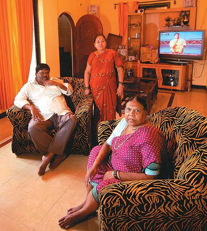 Add up his assets—which include a house and a 1,300 sq ft apartment—and Ramchandra is easily a half-crorepati. It all comes from money wisely invested and carefully spent—the money being the compensation package he collected from the Maharashtra government in the early ’80s when it acquired village land to develop Navi Mumbai. The drawing room of his house, itself the size of a studio apartment in Mumbai, boasts of a 46-inch LCD—a Sony Bravia, no less—and a plaster-of-Paris ceiling complete with gold-rimmed cornices, recessed lights and the mandatory chandelier. His wife Anasuya, well up with the latest saree trends, sports a hand-embroidered chiffon, and her kitchen has an LPG gas stove and a large refrigerator. His mother, Anandi Dagdu Katkari, unfailingly keeps her appointed time with assorted Marathi serials on TV in her bedroom. The only suggestion of her Katkariness is her attire—the typical nine-yard saree and trademark jewellery—and her dialect.