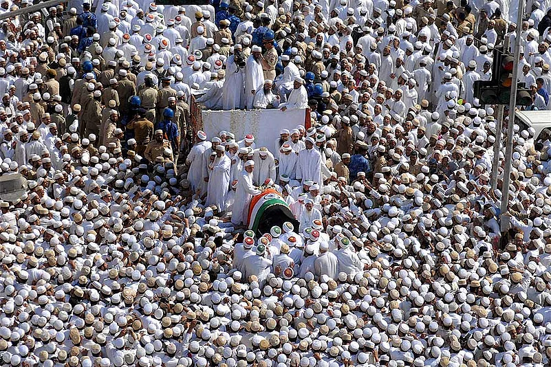 A community that loves its colours, mutton (in every possible cuisine) and sweets (of all kinds), and has largely remained “non-controversial and pragmatic” for decades suddenly came under the spotlight when the 52nd Dai—the hereditary leader of the community—Syedna Mohammed Burhanuddin passed away last week. Thousands made their way to Saifee Mahal, at Malabar Hill, where the Syedna lived and breathed his last. They wanted to get a last glimpse (deedar) of their beloved Bade Mullaji before he was buried at the Raudat Tahera mausoleum. As a massive crush built up on the narrow street, the gates of Saifee Mahal were shut. Chaos erupted. The stampede that followed killed 18 and injured over 40. The funeral procession was said to be only second in size to that of Bal Thackeray’s.