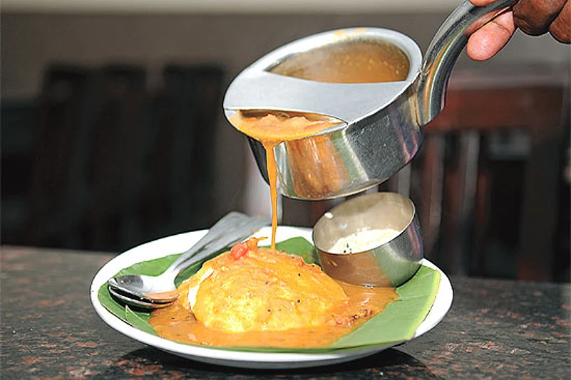 Since 1946, people have been making a pilgrimage to Triplicane for two reasons: the first, of course, is the Parthasarathy temple, but the other is ‘Triplicane Ratna Cafe’, with its legendary sambar and idlis. It’s located in a crowded gully, opposite ABT Tyres Tubeless Puncher (sic), and its signboard proclaims it to be the ‘Crown of South India’, which is a forgiveable exaggeration. It’s a sprawling two-storey maze of eating and cooking spaces, wafting the fragrance of masalas and drumsticks that make up their famous sambar.