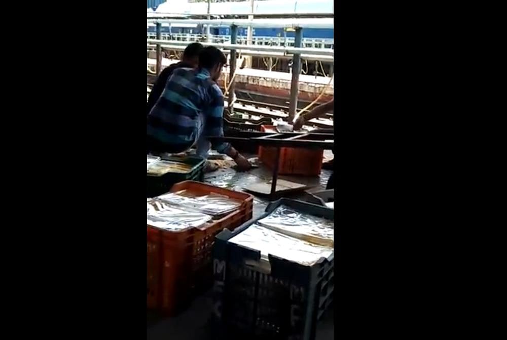 The video itself shows three people sitting around crates of packaged food that is distributed to Railway passengers. One of the men is gathering what looks like rice which has dropped out of a casserole and is stuffing it into the foil packaging.