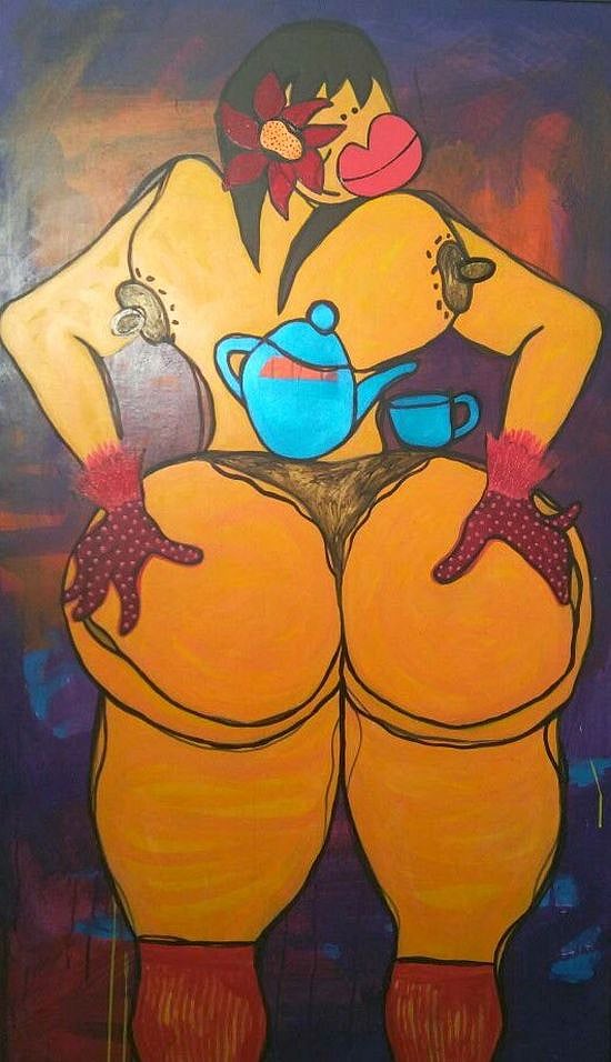 The thickly taint of visual apathy—sometimes as stubborn as Delhi's smog—that this bespectacled writer is used to see through, was dispersed after gawking at a big canvas for a good five minutes. A big woman, voluptuous and vibrant, the fat black brush strokes that define her fluid form suggesting a carefree confidence: rebelling against conventional women body types in art and also reveling in the transgression. "Someone once told me my ass is so big, you can place a teapot on top of it and it will stay," says artist Varnita Sethi. And so, a blue teapot and a cup entered the canvas. She painted 'The Yellow Nude'', as this canvas is called, on an impulse in half-an-hour.