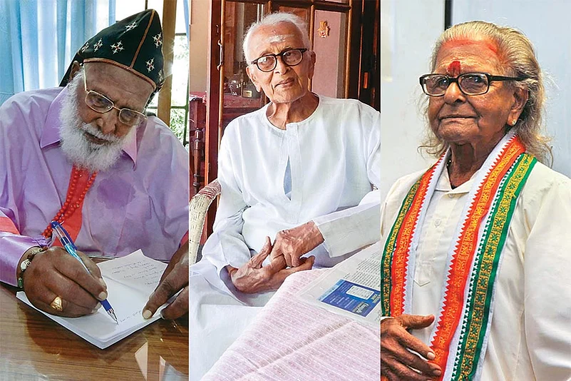 Another Kerala centenarian lives in the state capital. K. Ayyappan Pillai, 103, shares the secret of long life simply as “malice towards none and goodwill to all”. An advocate and a politician, Pillai had met Mahatma Gandhi in 1934, when he was 20 and was to lead the freedom struggle icon on to the dais. “It was on January 28. Gandhiji asked me what I was doing and I told I was doing my degree and planned to take up a government job that was promised to me. (My father was a senior officer in Divan Muhammad Habibullah’s office.) Gandhiji told me not to go for a job, but to do social service.”