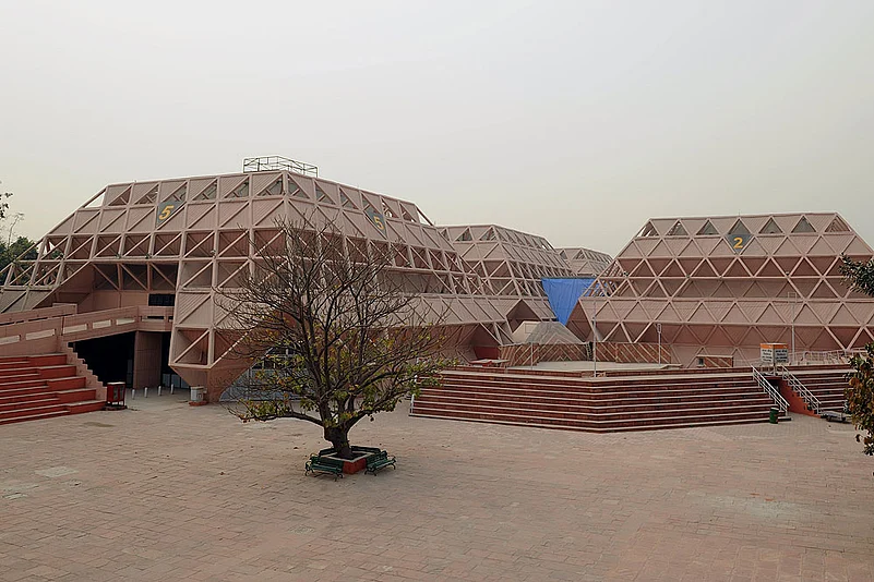 Its imprint on the Delhi skyline as distinctive as it gets, the Hall of Nations at Pragati Maidan is widely seen as an iconic representation of modern Indian architecture. The space-frame octahedron structure, with trusses splayed out in visually dynamic lines, was built in 1972 as part of celebrations to mark 25 years of India’s independence and to mark the country’s arrival as a global exhibition space for industrial goods. Its architect, Raj Rewal, opted for reinforced concrete instead of tubular steel frames then popular in American and European architecture, and labour-intensive construction methods instead of technology-driven ones. The logic was simple: steel was scarce and expensive in India but labour was abundant.
