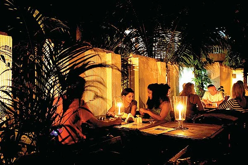 We bumped into an interesting elderly Englishman, who turned out to be the owner of not one, but two Michelin-starred restaurants in London. Naturally, the subject soon turned to food. He and his wife had just returned from Goa and we asked which their favourite restaurants there were. He mentioned the expected names—Corinne’s, Souza Lobo, etc—and then said he’d just discovered a new joint whose name he’d forgotten, where he’d had an excellent lobster meal. Coincidentally, it turned out to be Travelbar, a place that we ourselves had discovered on our last visit. Run by the charming Angie Lobo, it’s probably the only restaurant in the world with an attached travel agency (hence the name). It’s a small, alfresco place that serves great Mediterranean-fusion food. We sat in the courtyard under coconut and cashew trees and had a wonderful meal of tempura prawns, Greek salad, seared filet of fish with asparagus in a lemon-caper sauce, and chicken in an orange-and-mustard sauce. All very good, and very well presented. But don’t take our word for it; ask our English restauranteur friend. His opinion has four Michelin stars behind it.