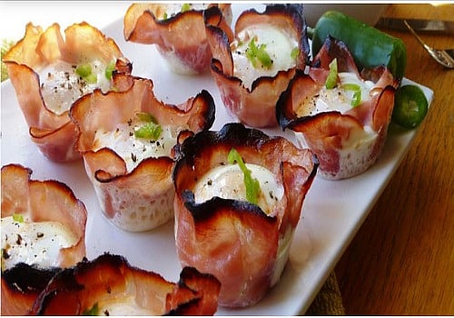 8. Remove from the oven and let stand for 5 minutes before gently removing ham cups from the tin.