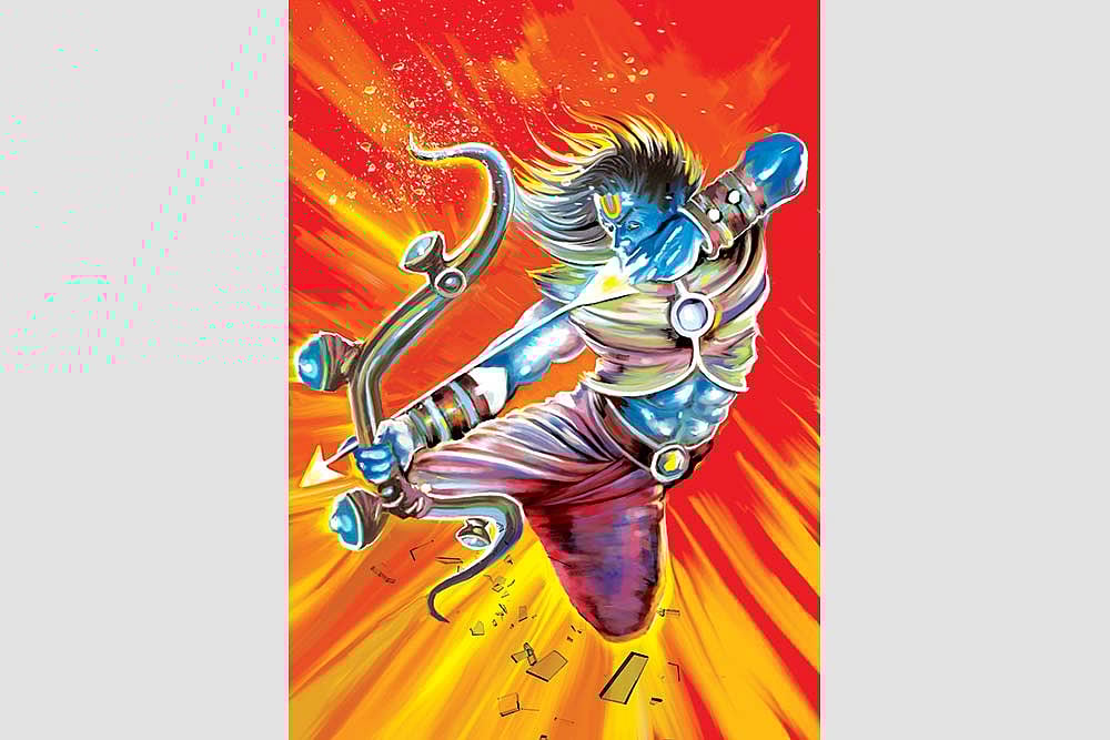 On the battlefield, Bheeshma faced Krishna’s chariot. Behind Krishna was Shikandi, who had learnt warfare as a child, and, behind him, was a lurking Arjuna, ready to take on Bheeshma when the opportunity came. As Bheeshma and Krishna debated about the dharma and adharma of a woman, or woman-man, present in the battlefield, the former lowered his bow. Krishna immediately urged Shikandi and Arjuna to release a volley of arrows “so that they puncture every inch of the old man’s flesh. Pin him down to the ground, immobilize him so that he can no longer immobilize the war”.