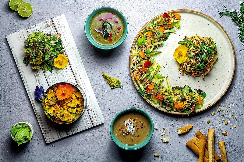 And what of restaurateurs who keep the faith? Vikramaditya Sharma, founder of Purple Greene, Delhi, knew he would use stoneware and avoid bone china as it contained bone ash, not serve food made with cheese containing animal rennet and serve gelatos not containing any gelatine. “Cooking vegan was never the challenge,” says Arun Tyagi, chef at Purple Greene. “The process remains the same, just some ingredients aren’t easily available. The key was to adopt some of the soups, salads, small bites, main meals and desserts to the vegan grid, ensuring they continue to be delicious.”