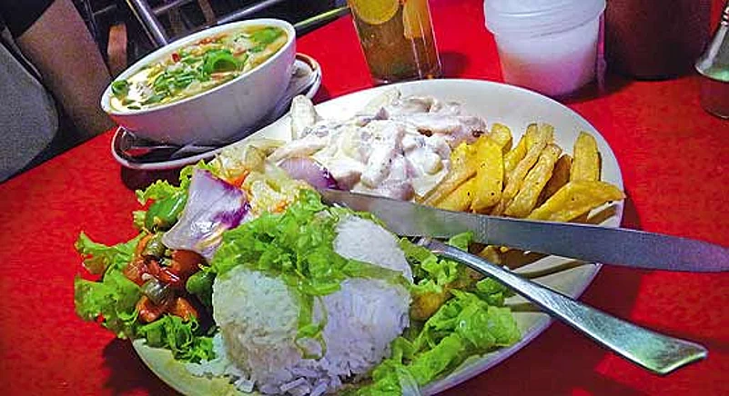 The menu was no surprise: a touristy mish mash of Israeli, German, Indian mains to Conti breakfast platters. We sipped merrily on the punchy Mint Ginger Lime Juice (Rs 70), while waiting for the Israeli Fafa (Rs 150), a humongous portion of excellent hummus and lightly flavoured stir-fried veggies wrapped in a naan. On another visit, we had Veg Thentuk, flat noodles in a yum garlic gravy with lots of greens. The Chicken Stroganoff was super too, meat in a garlic mushroom gravy with rice and a side of veggies and fries. On most days, Gesmo was housefull—it didn’t stop me from raiding the bakery counter with its home-style cakes and giant, buttery cookies. The banana, lemon cakes (Rs 50, Rs 40), though soft and moist, could have done with a little more flavour, but the cinnamon chocolate roll and almond cookies were heavenly. Bonus points for the house Yak cheese we brought back, great stuffed in quiche or just to nibble. But good cheese or not, Gesmo had me at hello.