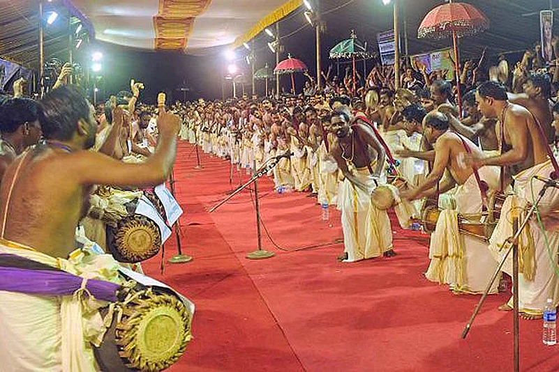 Puthussery Ranjith faced rounds of painful suspense before he made it to the outer edge of a row of 15 timila percussionists at the post-dusk panchavadyam that rung curtains down on the eight-day ulsavam festivities on December 5. For, the youngster is a paraya—a caste that gave English the word pariah. “A couple of artistes protested. The organisers went into a dilemma—and I had to intervene,” says activist-politician P. Vasudevan. “Much of the joy of performing is lost when you have to fight caste issues,” chimes in Ranjith, who is from Choondal near Kunnamkulam in Thrissur district.