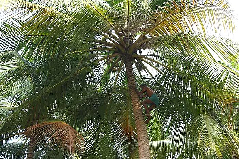 Kerala faces a nutty problem. The state is in desperate need of coconut palm climbers and its government is now willing to do whatever it takes: give this age-old profession a modern makeover, give it respectability or even give it another name—whatever will get people to shin up the lofty palms and send the nuts hurtling to the ground. The state needs approximately 40,000 more climbers to harvest the entirety of its coconut produce annually. For 3,000 years, rigid tradition had assigned the task to certain communities: the father climbed up the coconut palm and so did his son, for generations on down. But all that has now changed. The tree climber has all but vanished. They have moved on to professions that are more grounded, less risky and do not involve suspending oneself by a knotted rope a hundred feet up for most of the workday.